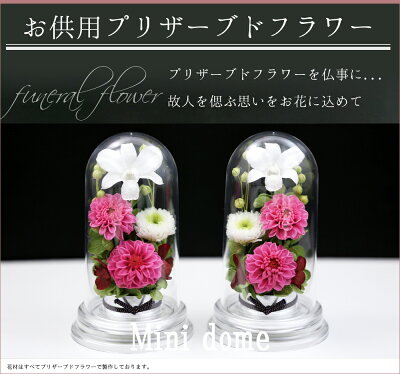 仏花 新盆 【対デザインSET Miniお供え花ミニドーム】 お供え花 お供え プリザーブドフラワー 一対 仏壇用 ブリザードフラワー 法事 モダン仏壇 ミニ仏花 仏壇用 プリザーブドフラワー ケース 供花 お悔やみ 初盆 新盆 枕花 お彼岸 法要【送料無料】