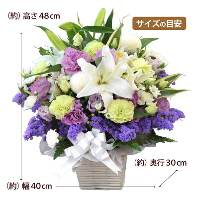 /バスケット/吸水性スポンジ/リボン/ご希望の方にメッセージカード又は名札/お取扱説明書 【お線香】 4種の線香セット「花げしき」 内容量:約25g×4箱 線香4種(花げしき:薔薇の香り/桜の香り/しゃぼんの香り/ラベンダーの香り) 燃焼時間:約19分 箱サイズ:(約)横10.7×長さ15.7×縦2.8cm サイズ 約:横40×奥行30×高さ48cm花材・デザインにより多少異なります。