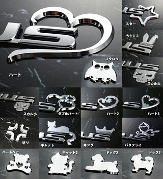 人とはちょっと違うアイテムで周りの注目度UP! 【素材】ABS樹脂(メッキ仕様)厚み約3mm 【デザインタイプ:サイズ(約)】 ・ハート:H59mm×W73mm(開口部25mm) ・スター:H68mm×W68mm(開口部25mm) ・うさミミ:H32mm×W28mm ・スカル(大):H35mm×W47mm ・スカル(小):H25mm×W35mm ・ダブルハート:H50mm×W58mm ・ハート2:H54mm×W58mm ・ハート3:H60mm×W49mm ・キャット:H68mm×W68mm ・怒り:H15mm×W15mmが4個 ・キング:H28mm×W57mm ・バタフライ:H71mm×W64mm ・フクロウ:H36mm×W48mm ・ハートベア:H43mm×W48mm ・キャット2:H48mm×W48mm ・ドッグ2:H35mm×W52mm ・ドッグ3:H43mm×W47mm ・キャット3:H55mm×W65mm(開口部25mm) ・肉球:H45mm×W53mm ・ドル:H39mm×W27mm(全20種類) ↓新型!エンブレムチャームはこちら↓ 取り付け方法: ・接着面は脱脂をしっかりしましょう! ・貼る場所を決めたら、一気に貼ってください。