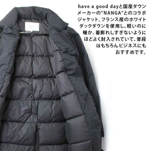 ネコポス不可 タイプ ナンガ ダウンジャケット コラボ メンズ ダウンコート Have a good day × NANGA DOWN COAT 130 / ナンガ ダウン 別注 キャンプ 冬キャンプ ファッション 秋 冬 秋冬 現在開催中のキャンペーン一覧 モデルDATE:身長175cm:Mサイズ着用 have a gppd day(ハブアグッドデイ)から新作アイテムが届きました。