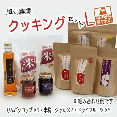 【ふるさと納税】風丸農場 クッキングセットL 【加工食品・ジャム・リンゴ・アップル・お米】 【風丸農場 クッキングセットL:干しりんご40g(品種おまかせ)×4、干しプルーン50gまたは干し柿40g×1、りんごジャム150g×1、ブルーベリーまたはラズベリージャム150g×1、りんごシロップ200ml×1、米粉500g×2】スムージーやマフィン、パウンドケーキ・・・干しプルーンはそのままでもおいしいですがスイーツ作りに大活躍。