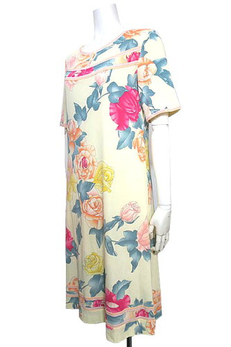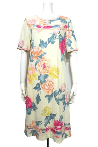 【中古】LEONARD レオナール ワンピース レディース 半袖 総柄 花柄 サイズ40 人気ブランド