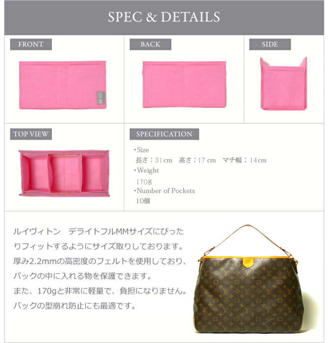 バッグインバッグ レディース 14色展開 フェルト素材 ルイヴィトン デライトフルMM用 インナーバッグ 整理 トートバッグ 小さめ 大きめ a4 かわいい 軽量 軽い