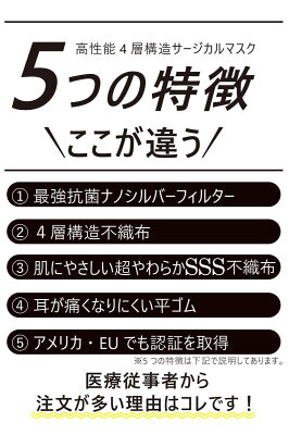 サージカル マスク 医療用 お徳用 500枚 静菌効果が凄い 爽快 耳が痛くならない 平ゴム 肌に優しい 4層 シルバーナノ N95と同等 快適 銀イオン 不織布 高性能 抗菌 送料無料 使い捨て ベトナム n95 ASTM F2100 【1箱50枚入×10箱】 おすすめ